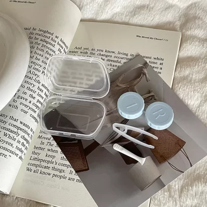 콘택트 렌즈 보관 케이스 – 핀셋 및 인서트 스틱 포함 (색상 랜덤)